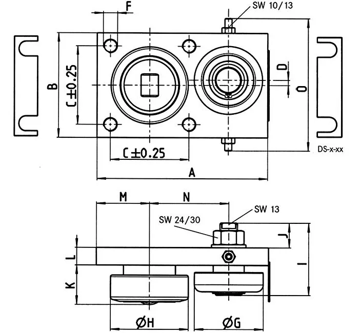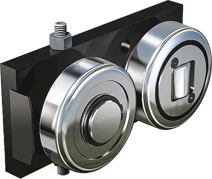 Регулируемый роликовый блок Winkel type JC состоит из аксиального подшипника, закреплённого на крепёжном фланце посредством сварки, и радиального подшипника на регулируемой оси, характеризуется высокой точностью позиционирования, отличной грязезащищённостью и высокой грузоподъёмностью в сочетании с высокими скоростными характеристиками до 2 м/с. Регулировка точности позиционирования осуществляется перемещением радиального подшипника, осевой зазор регулируется регулировочными пластинами.