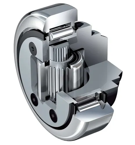 Аксиальный роликовый цилиндрический подшипник Winkel регулируемый эксцентриком. Конструкция данного подшипника позволяет регулировать величину осевого зазора между направляющим рельсом и подшипником посредством поворота эксцентрической оси игольчатого подшипника.