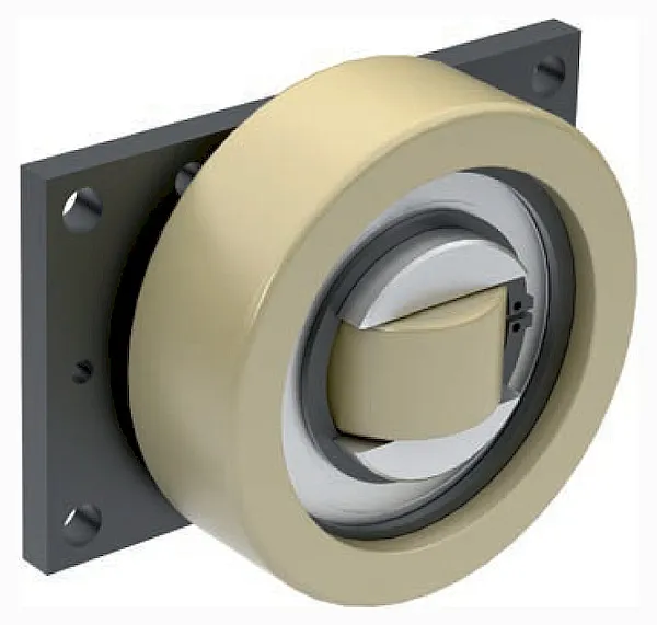 Аксиальные подшипники Winkel с покрытием POLYAMID с крепёжным фланцем характеризуются низким уровнем шума при работе и высокими скоростями до 5 м/сек., однако, стоит иметь в виду, что при повышении скорости перемещения нагрузочные характеристики снижаются. Максимальная рабочая температура 40oC.
