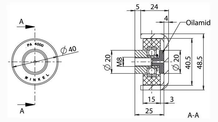 Аксиальные подшипники Winkel с покрытием POLYAMID и вставкой OILAMID характеризуются низким уровнем шума при работе и высокими скоростями до 5 м/сек., однако, стоит иметь в виду, что при повышении скорости перемещения нагрузочные характеристики снижаются. Максимальная рабочая температура 40oC.