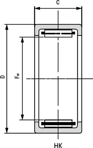 Однорядный игольчатый роликоподшипник со штампованным наружным кольцом и с открытыми торцами.