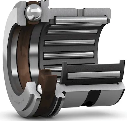 Комбинированный роликовый игольчатый подшипник, с упорным шарикоподшипником (для повышенных осевых нагрузок).