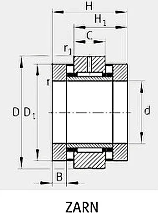 Радиальный игольчатый роликовый подшипник и двойной упорный подшипник с цилиндрическими роликами, с осевым преднатягом (легкая серия).