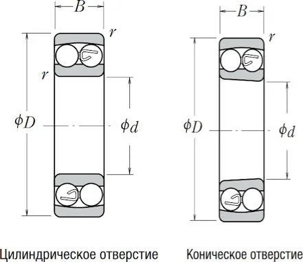 Наружный диаметр подшипника D, мм