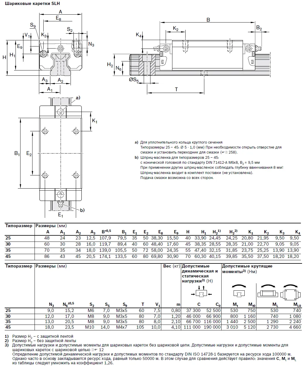Шариковая каретка SLH, типоразмер 25, класс предварительного натяга C0, класс точности N, со стандартным уплотнением, без шариковой цепи.