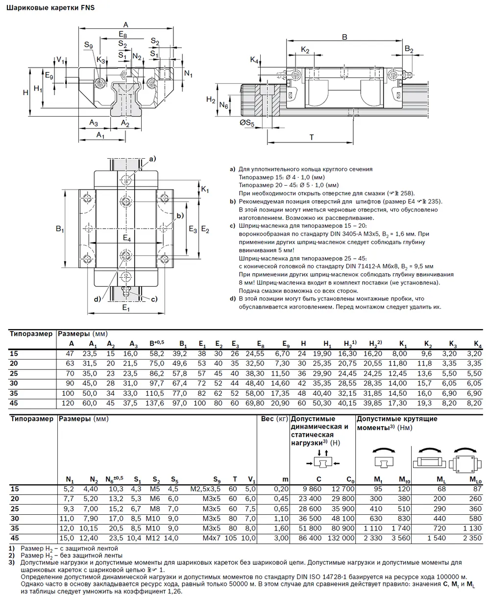 Шариковая каретка FNS, типоразмер 15, класс предварительного натяга C0, класс точности H, со стандартным уплотнением, без шариковой цепи.