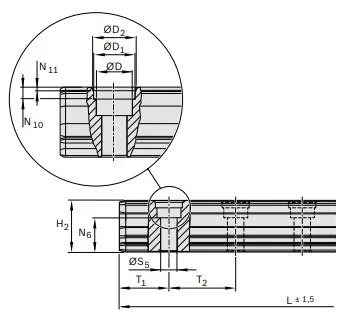 При заказе необходимо обязательно указывать общую длину рельса и величину отступа от торца рельса до центра первого крепёжного отверстия.
