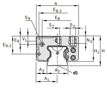 Межцентровое по крепежу каретки E1, мм