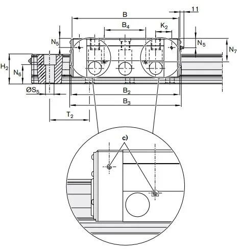 Стальная каретка для больших нагрузок, роликовая, стандартной ширины, типоразмер 125, класс предварительного натяга 0,13 C, класс точности H