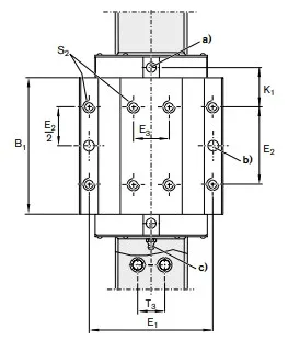 Межцентровое по крепежу каретки E2, мм